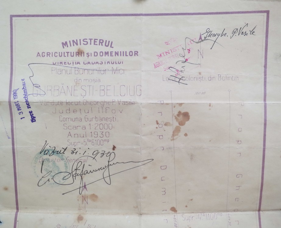 Document de vînzare a unui teren agricol către locuitorul Gheorghe P. Vasile din Comuna Gurbăneşti, Judeţul Ilfov în anul 1930