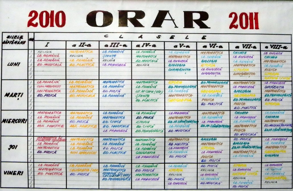 Orarul (experimental) al şcolii Gurbăneşti pentru anul şcolar 2011-2012